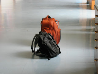 Mom and I took a shuttle to a nearby hotel, by this time it was 9:30 pm. We settled into our room and then rushed to the restaurant on the ground floor for a bite to eat. After dinner, our plan was to rearrange my suitcase packing and eliminate some articles from the carryon. (Sidenote: I'm only carrying a carryon and a personal bag. And how sweet it really is after seeing so many kids with two, three, or even FOUR suitcases to check!) We finished the packing revisions at 12:50 am, at which time we smelled something burning.